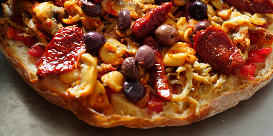 Specialità siciliana dal sapore autentico, il nostro pane cunzatu è preparato con pane casereccio appena sfornato e condito con ingredienti genuini.